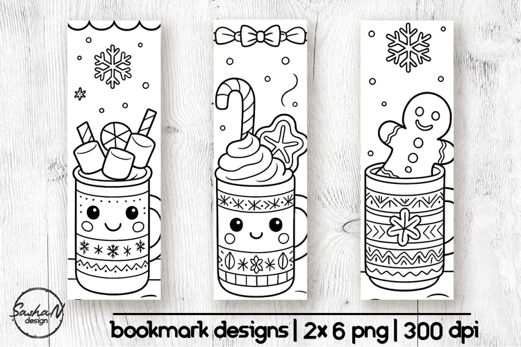 Christmas drink coloring bookmarks for kids example image 1