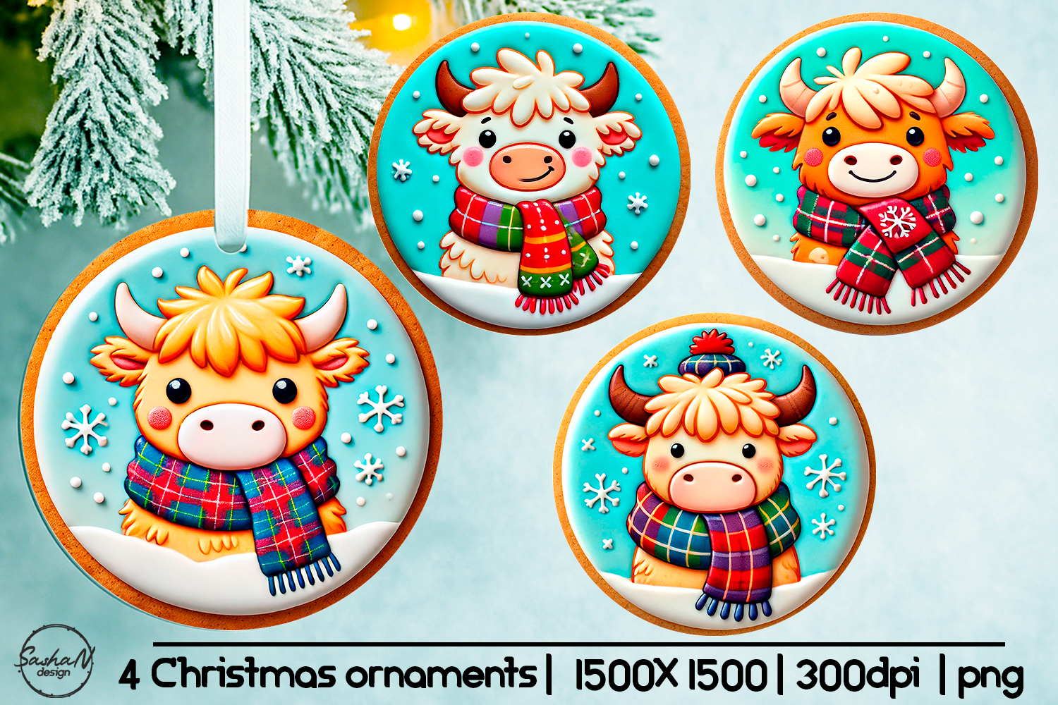 Similar Design Products to Cute highland cow Christmas ornament sublimation designs