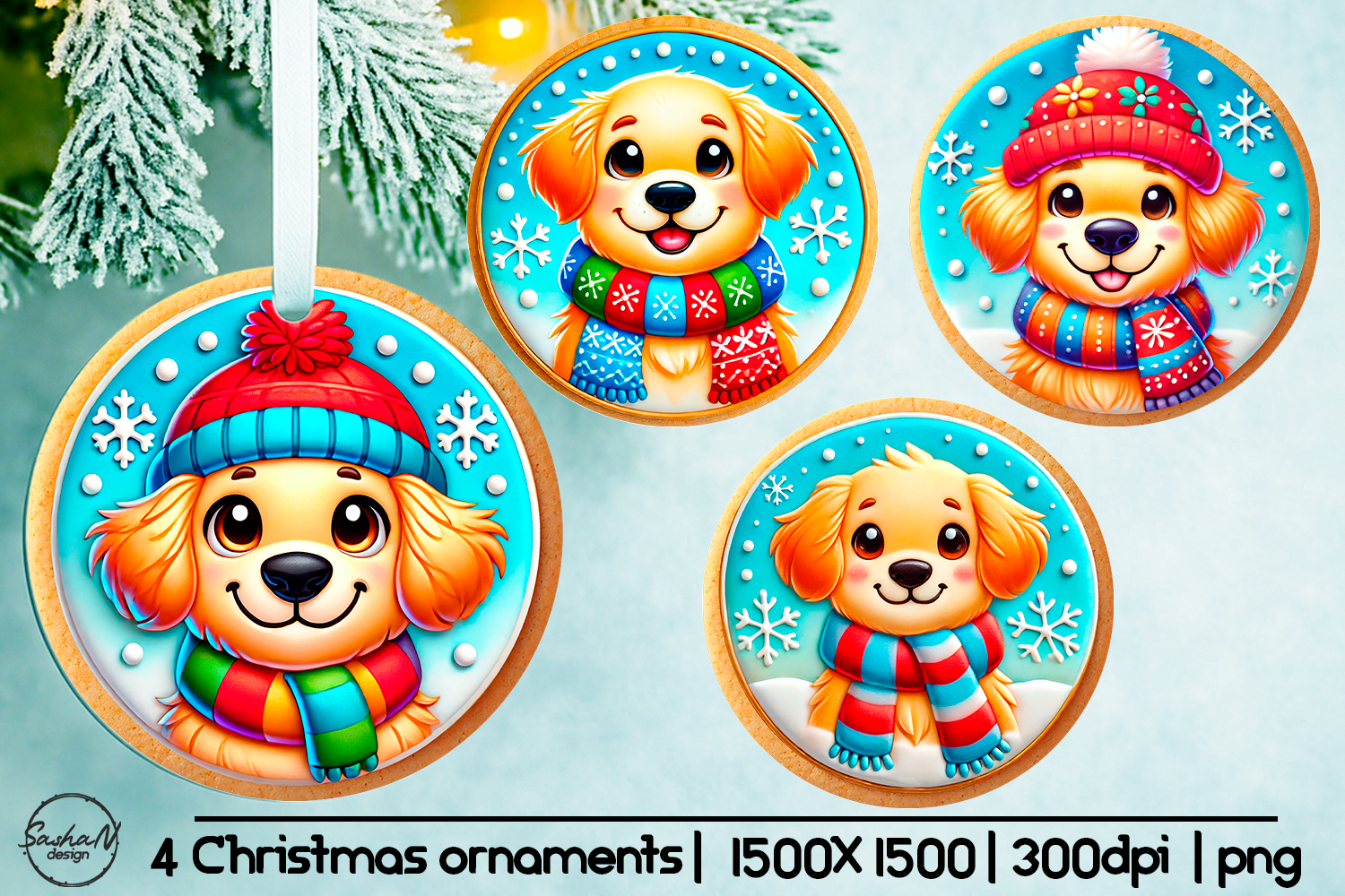 Winter Christmas Ornament Cute Christmas Clipart Gingerbread Cookie Clipart Christmas Sublimation Winter Animals Clipart Golden Retriever Png Christmas Ornament Sublimation Designs Dog Christmas Clipart Round 3d Christmas Ornaments