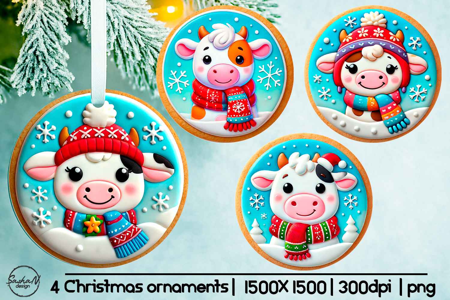 Winter Christmas Ornament Cute Christmas Clipart Gingerbread Cookie Clipart Christmas Sublimation Christmas Cow Winter Animals Clipart Cute Cow Clipart Christmas Ornament Sublimation Designs Round 3d Christmas Ornaments