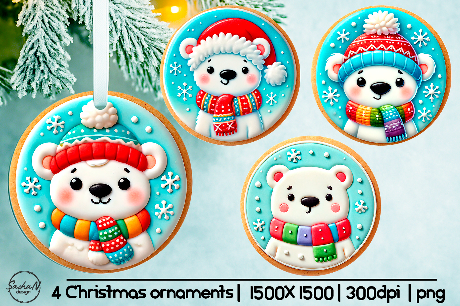 Winter Christmas Ornament Cute Christmas Clipart Gingerbread Cookie Clipart Christmas Sublimation Bear Png Winter Animals Clipart Cute Polar Bear Clipart Christmas Ornament Sublimation Designs Round 3d Christmas Ornaments