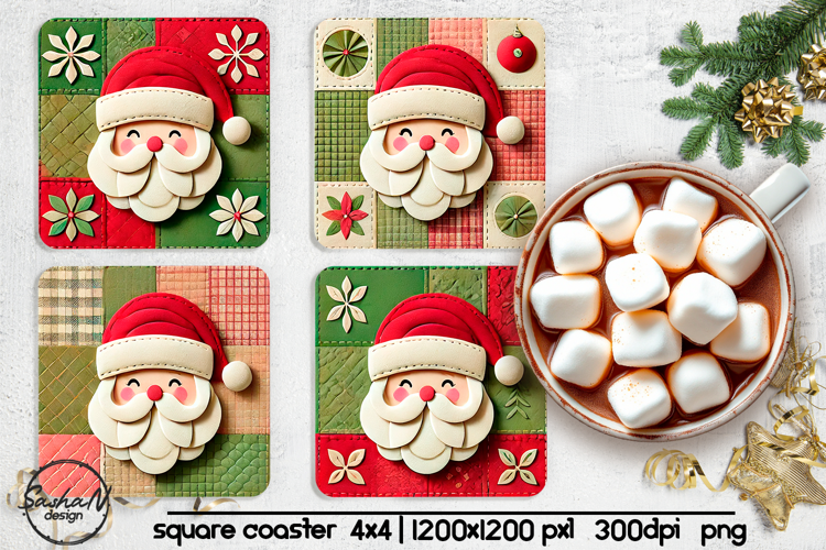 Patchwork Santa Png Applique Designs Winter Png Christmas Sublimation Designs Square Coaster Sublimation Coaster Square Coaster Designs Square Coaster Sublimation Christmas Square Coaster