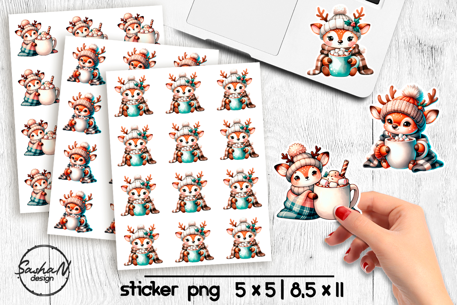 Cute Christmas reindeer stickers, Winter animals stickers