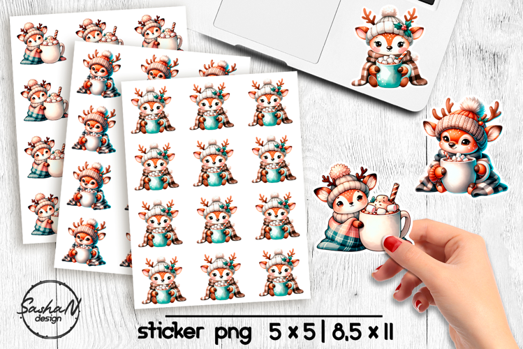 Cute Christmas reindeer stickers, Winter animals stickers example image 1