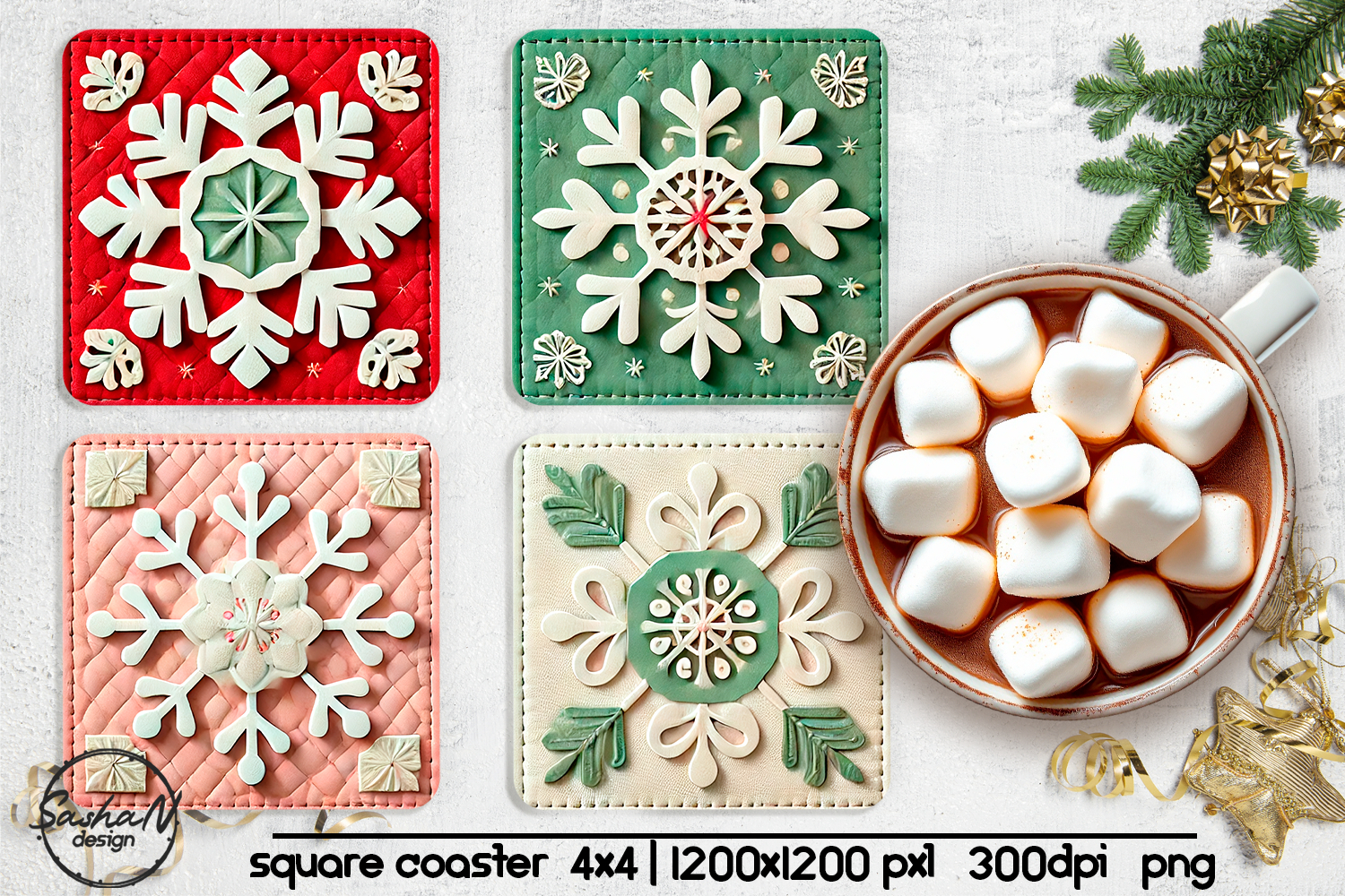 Snowflake square coaster sublimation designs