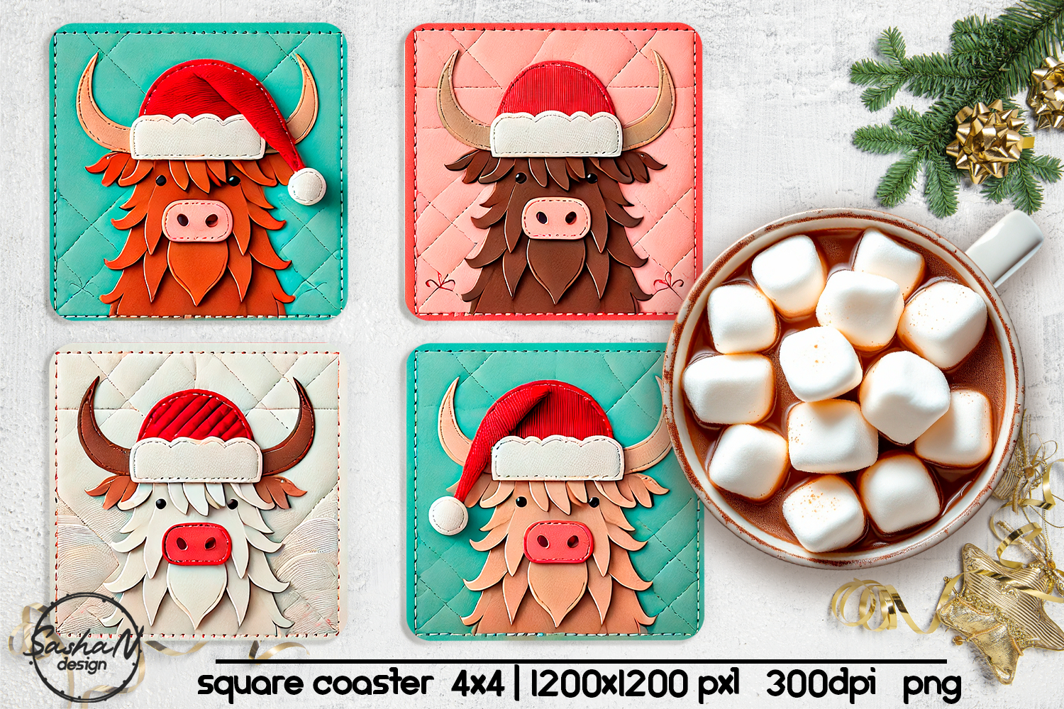 Similar Design Products to Christmas highland cow square coaster sublimation designs