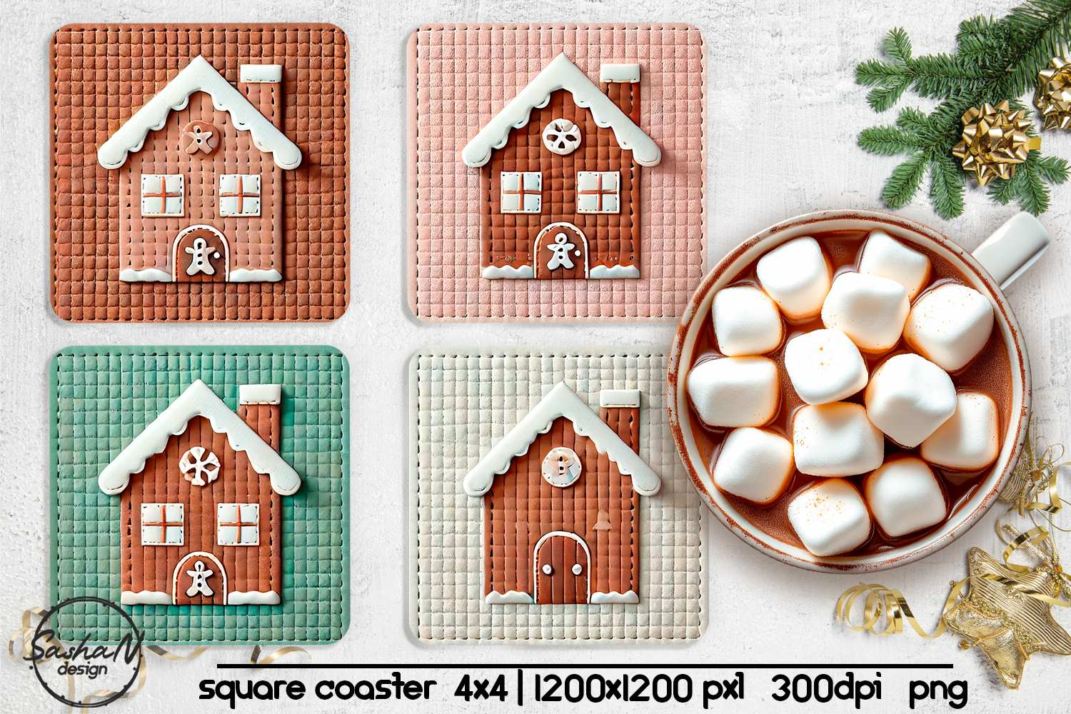 Gingerbread house square coaster sublimation designs