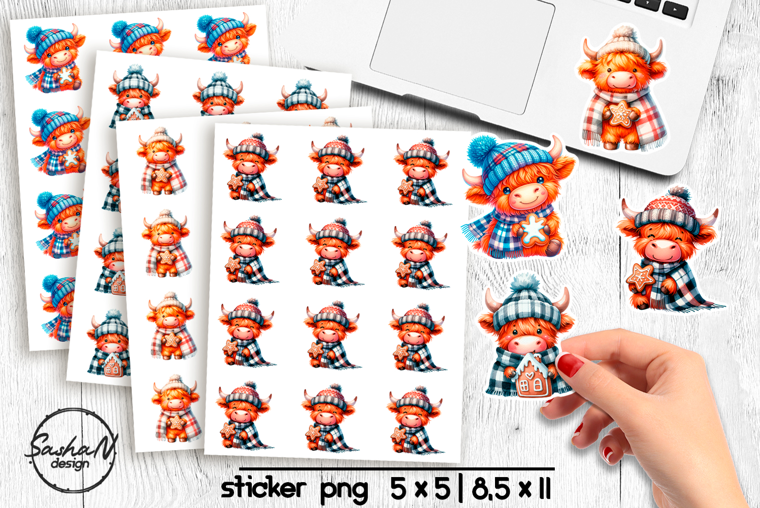 Printable Stickers Christmas Sticker Winter Animals Clipart Winter Stickers Sticker Sheet Stickers Png Planer Stickers Highland Cow Png Christmas Cute Clipart Cute Xmas Stickers