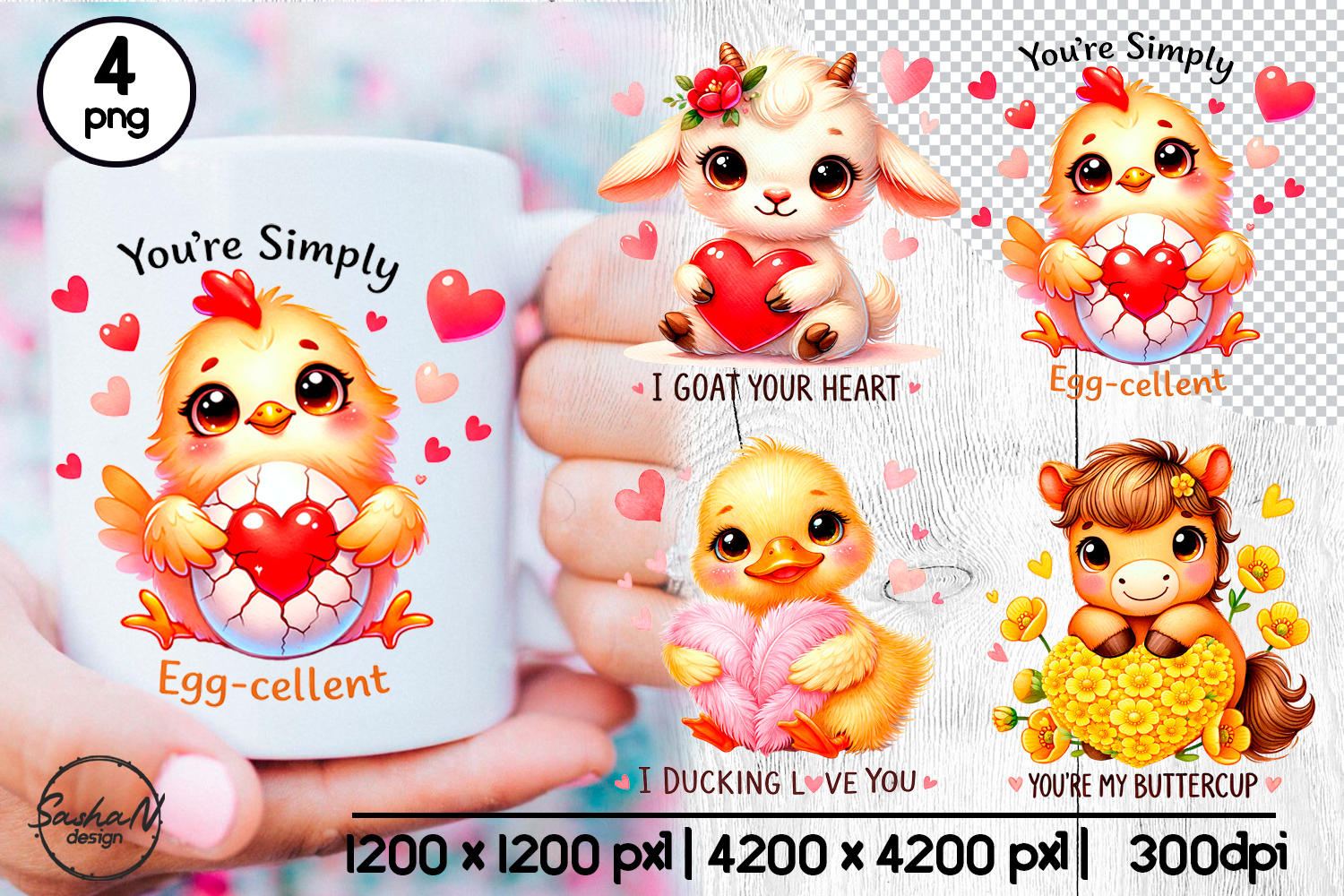 This Valentine animal pun clipart set features four adorable animals holding hearts with sweet and playful Valentine phrases. Including a frog, sloth, dinosaur, and penguin couple, each design combines cute characters with clever love-themed wordplay. These high-quality PNG illustrations are perfect for mugs, tumblers, greeting cards, stickers, apparel, and other creative Valentine projects, adding warmth, charm, and fun to your designs.