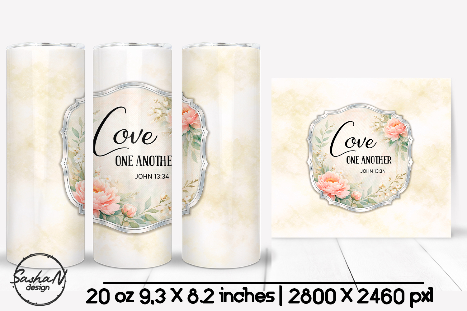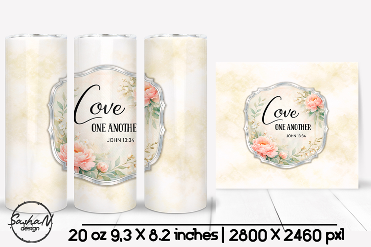 Graceful Christian sublimation design featuring a soft cream watercolor background, elegant florals, and the timeless Bible verse “Love One Another” – John 13:34. This faith-inspired design reflects compassion, unity, and kindness, making it perfect for meaningful gifts, inspirational drinkware, and Christian creative projects.