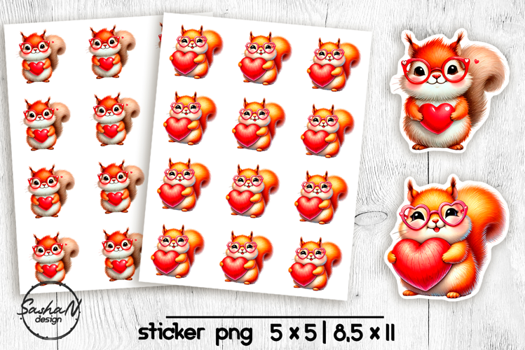 Similar Design Products to Squirrel png, Animal Valentine stickers, Printable sticker