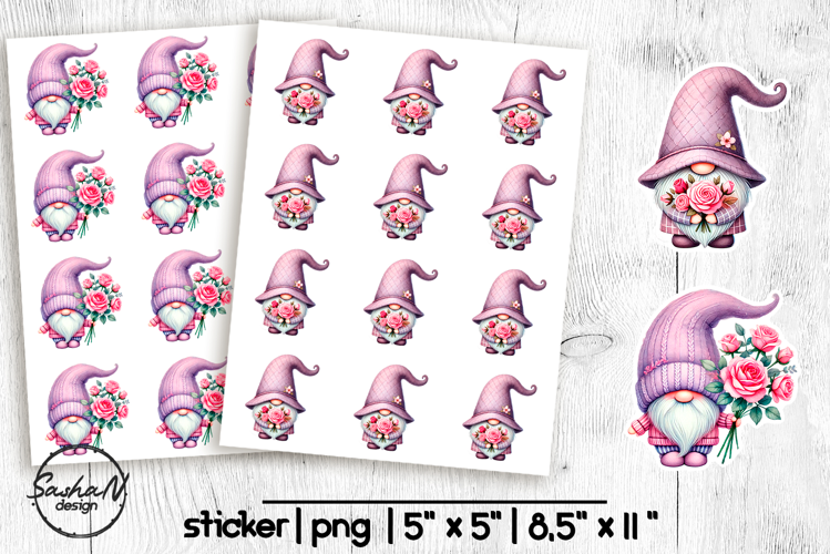 Valentine gnome Stickers, Printable stickers example image 1