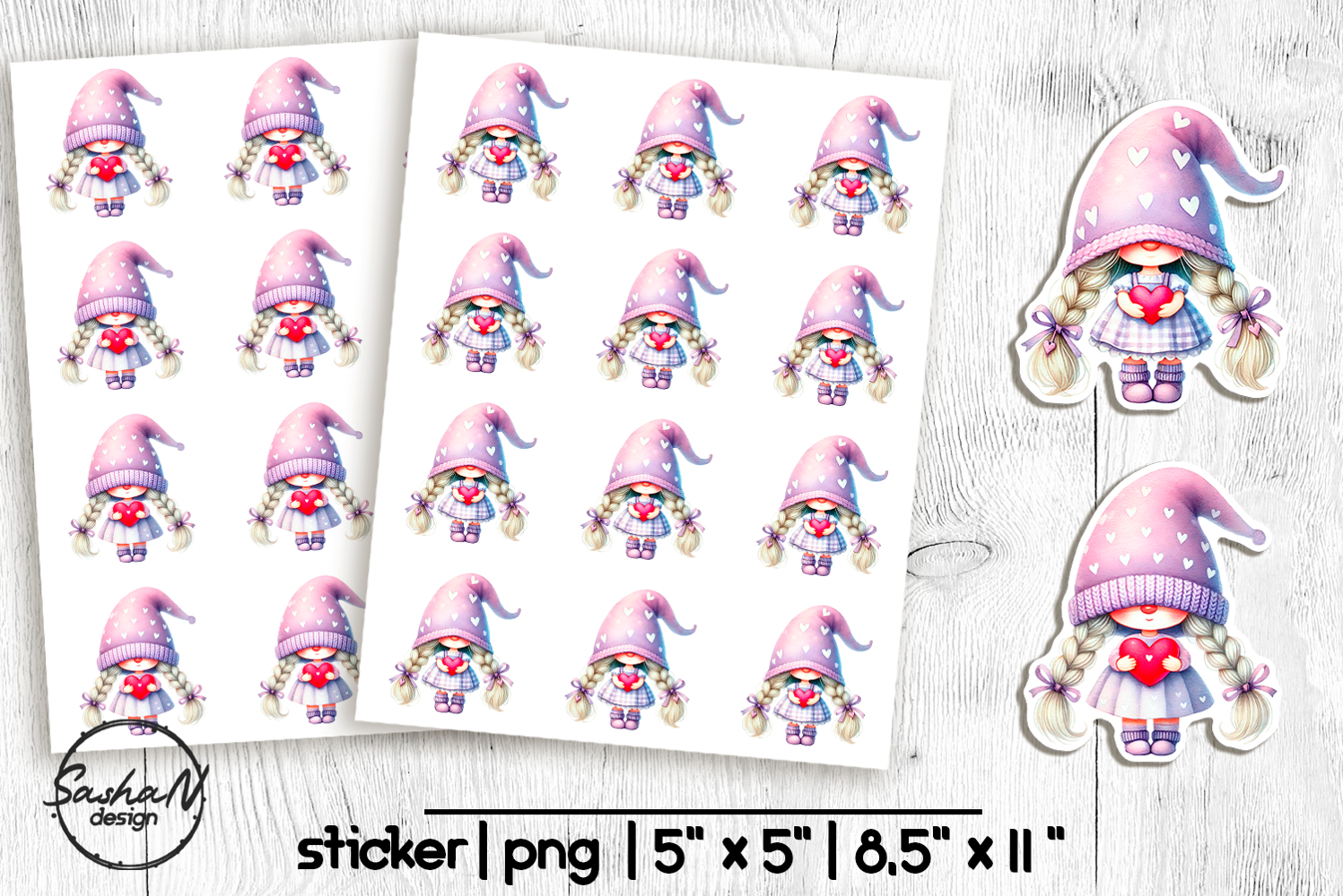 Valentine gnome girl stickers, Printable stickers