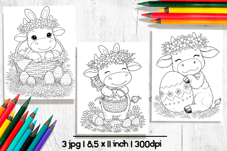 Similar Design Products to Cute Easter cow coloring pages, Printable coloring sheet