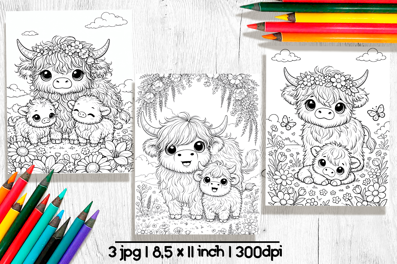 Similar Design Products to Cute animals Mothers day coloring pages, Highland cow