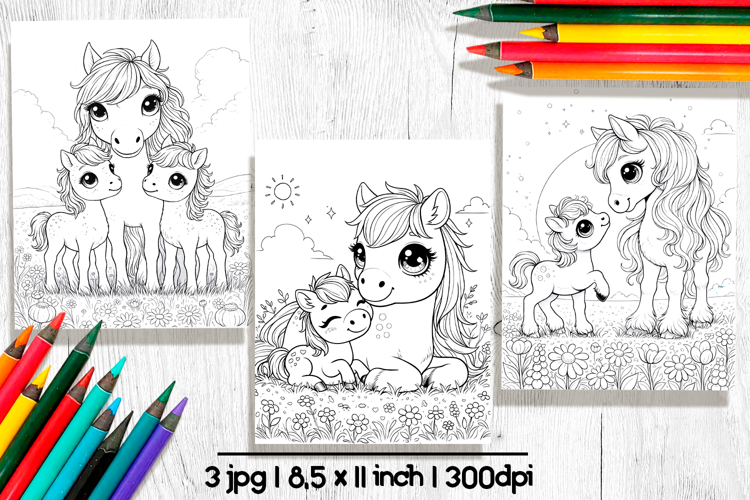 Cute animals Mothers day coloring pages, Horse coloring page example image 1