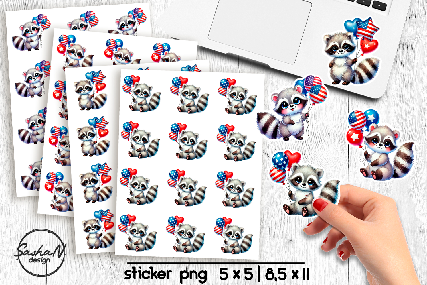 4th of July Animal stickers, Raccon stickers example image 1