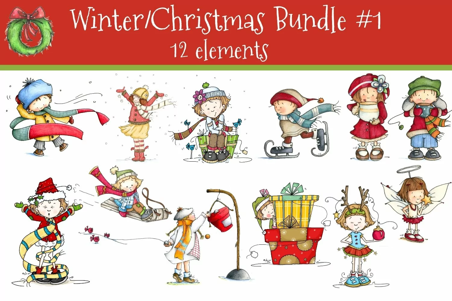 Winter/Christmas Kids Vol. 1 Bundle 12 PNG elements 300 DPI example image 1