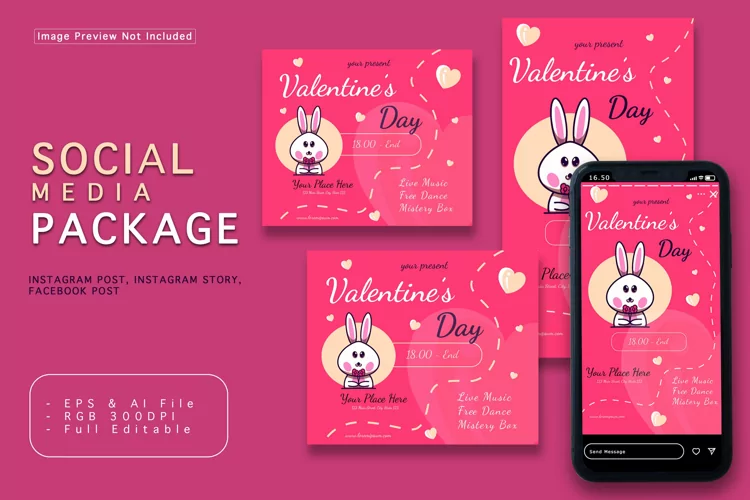 Social Media Package Template. It makes it easier for you to maintain an online presence on various social media platforms. This template included an Instagram post, Instagram story, and Facebook post that is easy to customize.