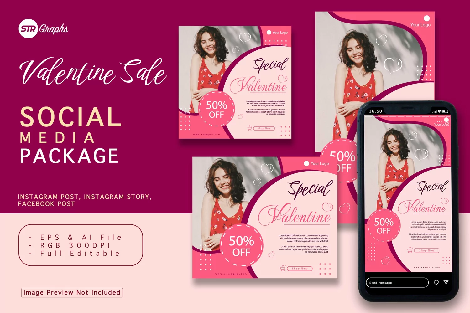 Social Media Package Template. It makes it easier for you to maintain an online presence on various social media platforms. This template included an Instagram post, Instagram story, and Facebook post that is easy to customize.