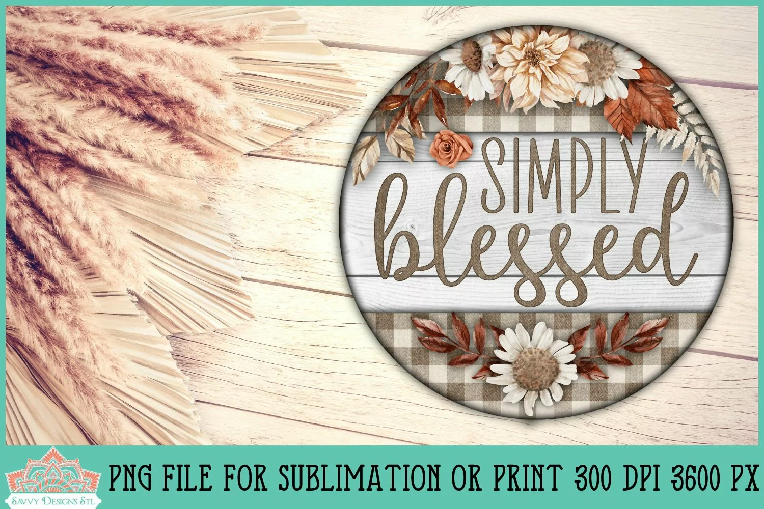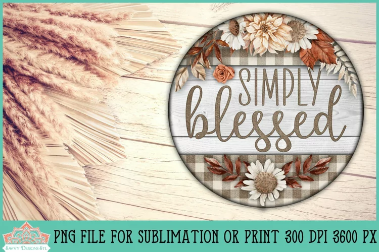 Simply Blessed Fall Floral Round Farmhouse Sign for Sublimation