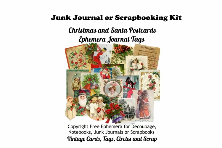 Vintage Christmas Embellishments Postcards Journal Kit For Notebook Pages, Junk Journal, Diary, Smash Journal