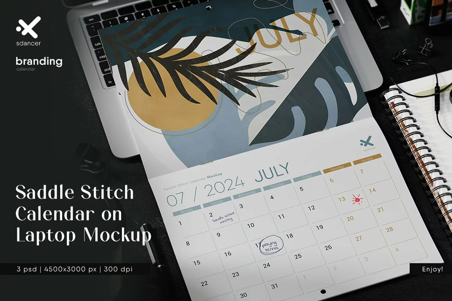 Saddle Stitch Calendar on Laptop Mockup