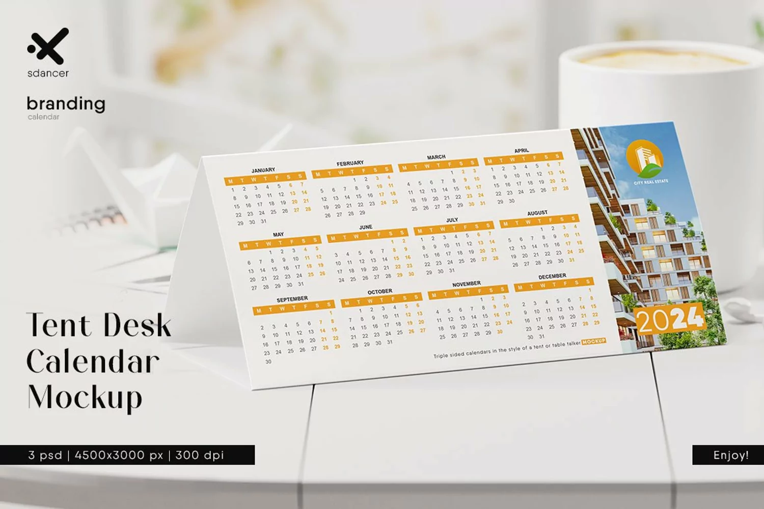 Branding Paper Mockup Triangle Tent Table Desk Calendar Year Week