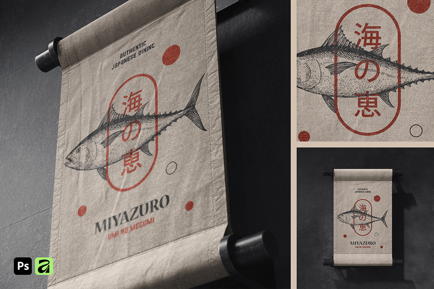 Display Banner Mockup Canvas Wall Fabric Cloth Textile Hanging Affinity