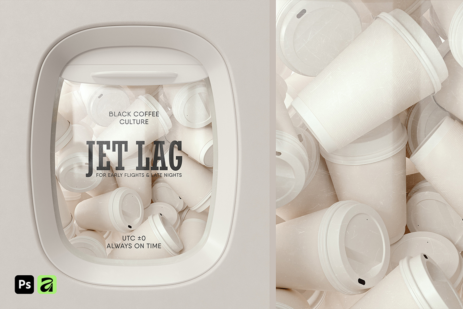 Airline Window Coffee Cups Mockup