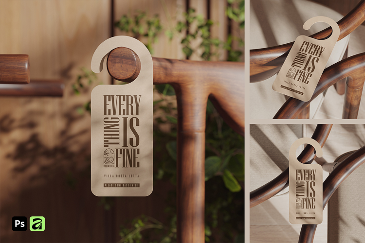 Identity Branding Sign Interior Mockup Tag Hotel Hospitality Hanger Door
