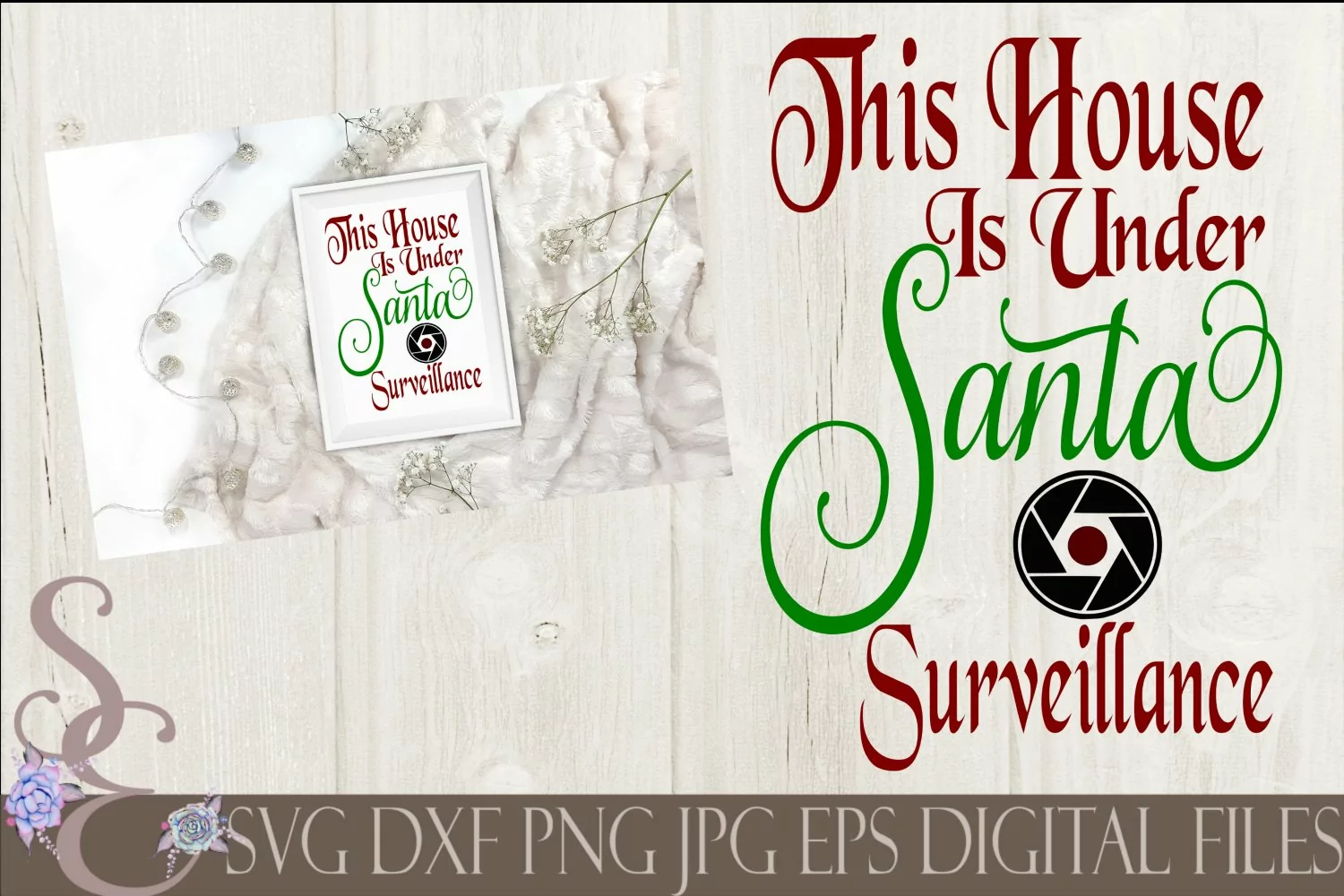 "This House is Under Santa Surveillance" Digital File. Use this file with your Cricut Explore or Silhouette Cameo to create a wood sign stencil or vinyl decal. PNG & JPG files are great for making framed clip art.