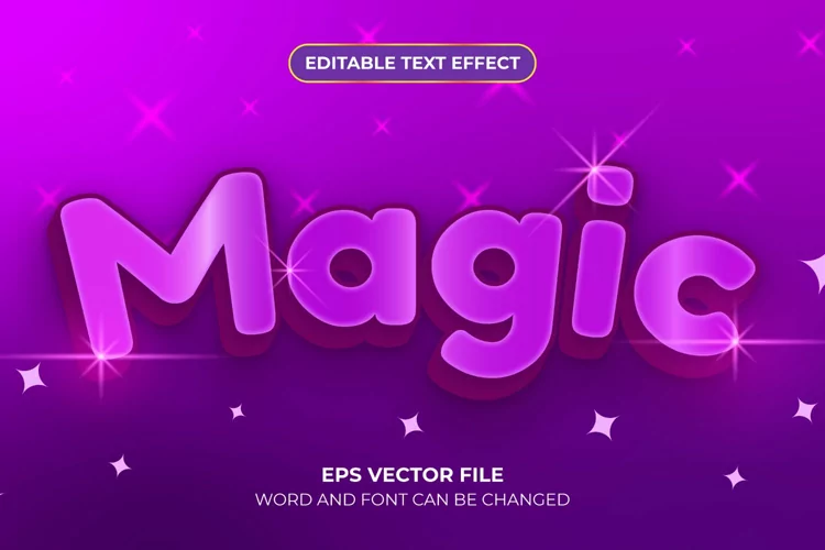 Typografi Magic Text Effect 3d Text Effect Magic Effect Editable Text Effect Purple Color Eps Text Effect Purple Magic Magic Text Effect