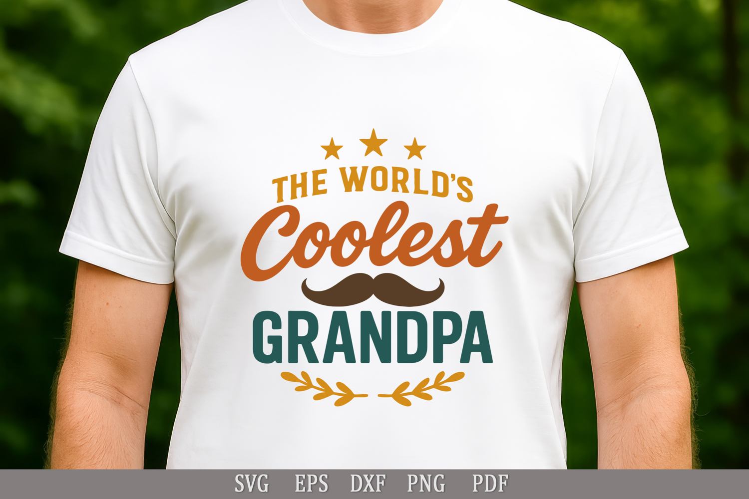 "World’s Coolest Grandpa" design is perfect for creating fun and lighthearted gifts that celebrate your grandfather's unique charm and humor. Ideal for t-shirts, mugs, greeting cards, and more. Suitable for Father's Day, birthday, retirement, Grandparents Day, anniversary, family gatherings, holidays, or just because.