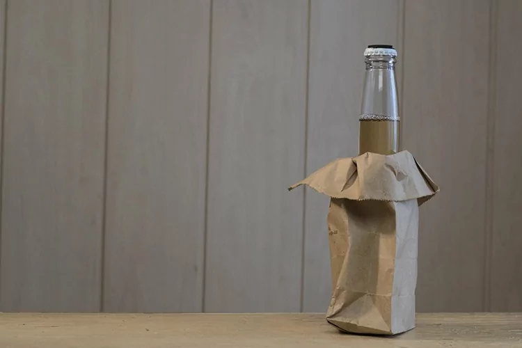 Glass bottle with a cider on the table