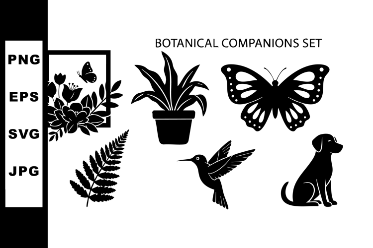 Flower Silhouette Set Botanical Butterfly Plant Hummingbird Dog Potted Companions