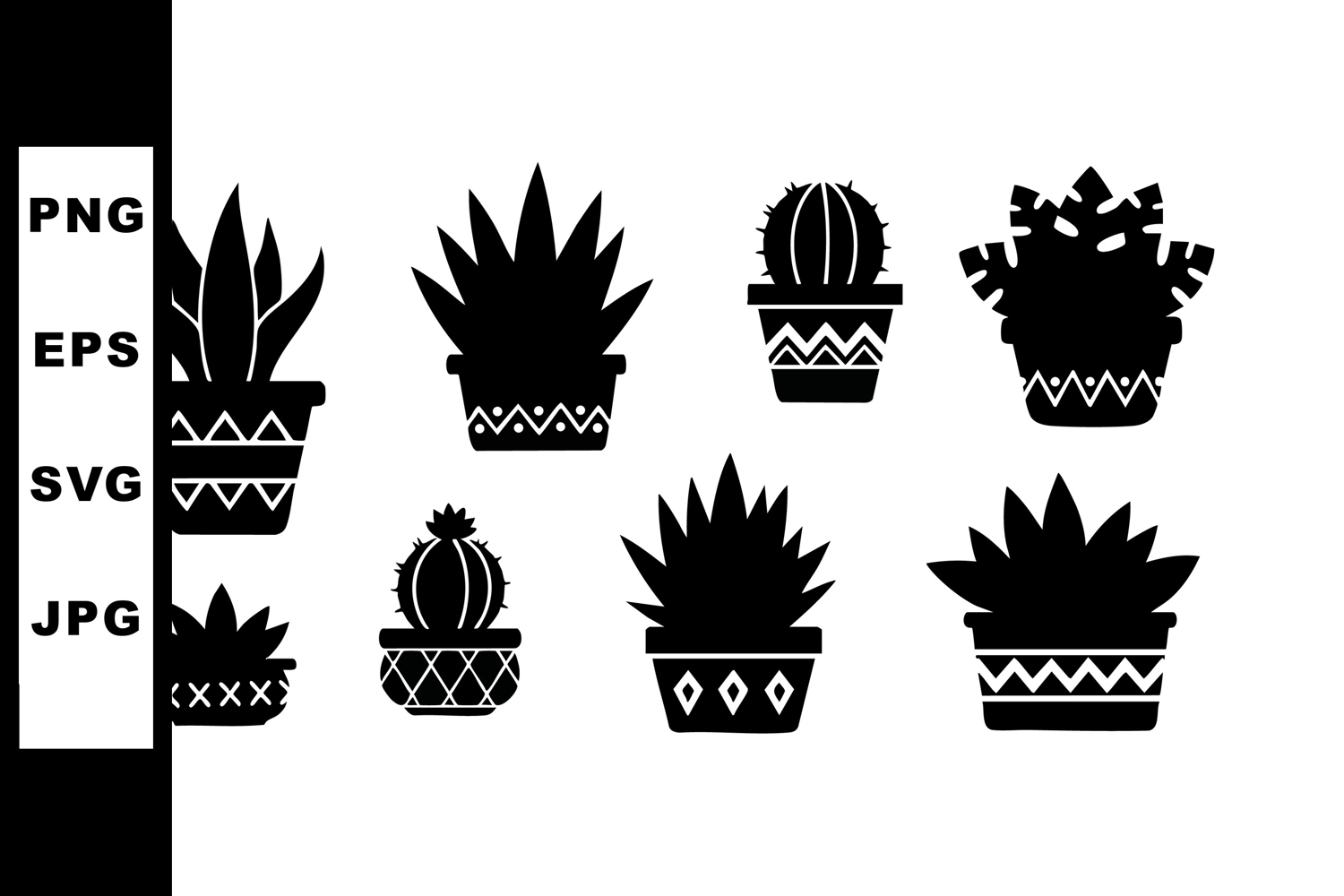 Similar Design Products to Black silhouette potted cactus and succulent plants in vario