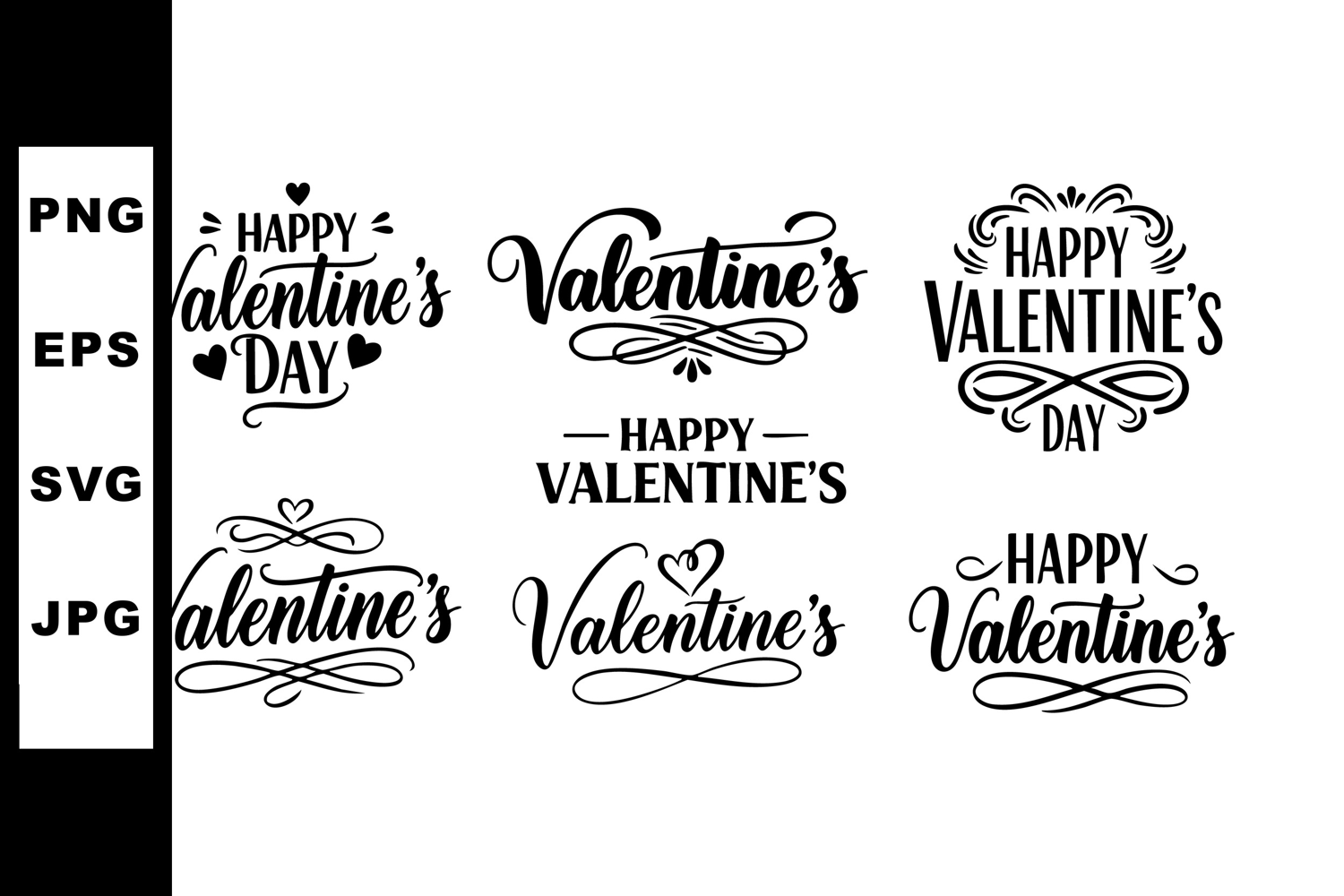 This vector file features six unique Valentine’s Day calligraphy text designs with elegant swirls and hearts, perfect for romantic cards or decor, evoking love and warmth. Charming mood.