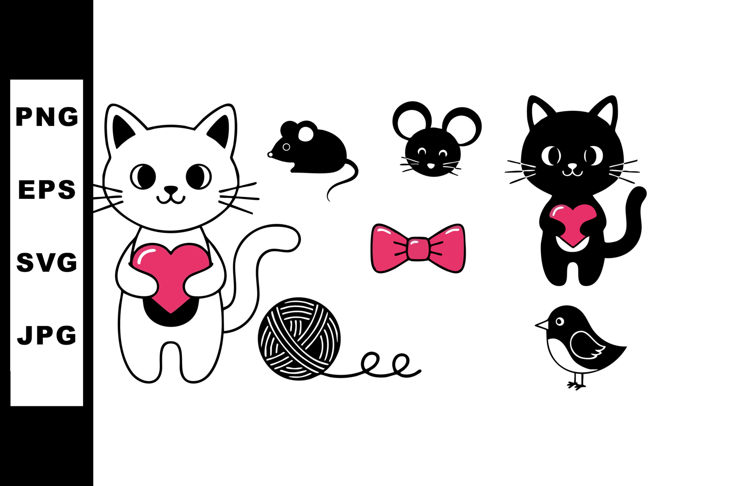 Cute cat holding heart with mouse bird yarn and bow tie vect example image 1