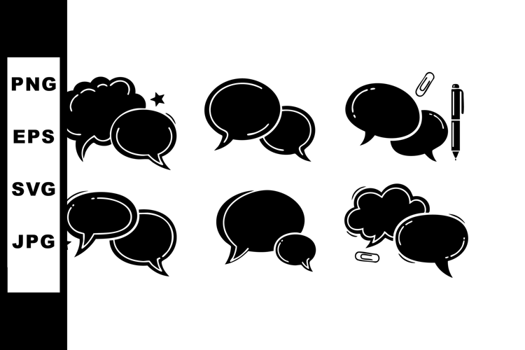 Similar Design Products to Black Speech Bubble Icons Set with Pen and Paperclip Vector