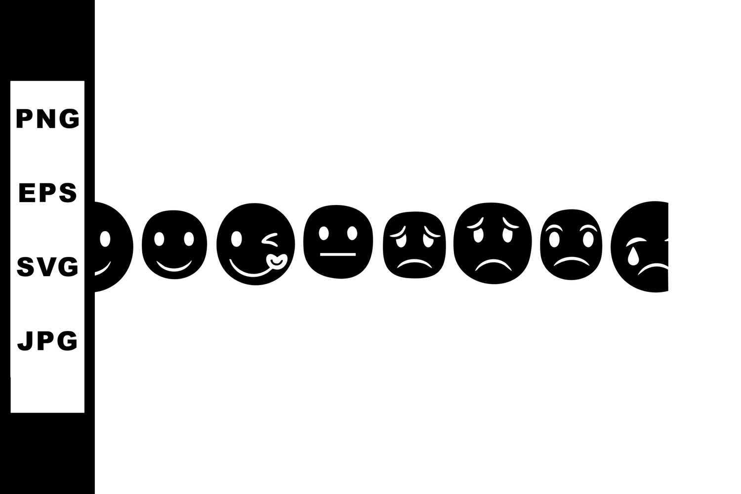Set of black emoticon faces showing different emotions in ve example image 1