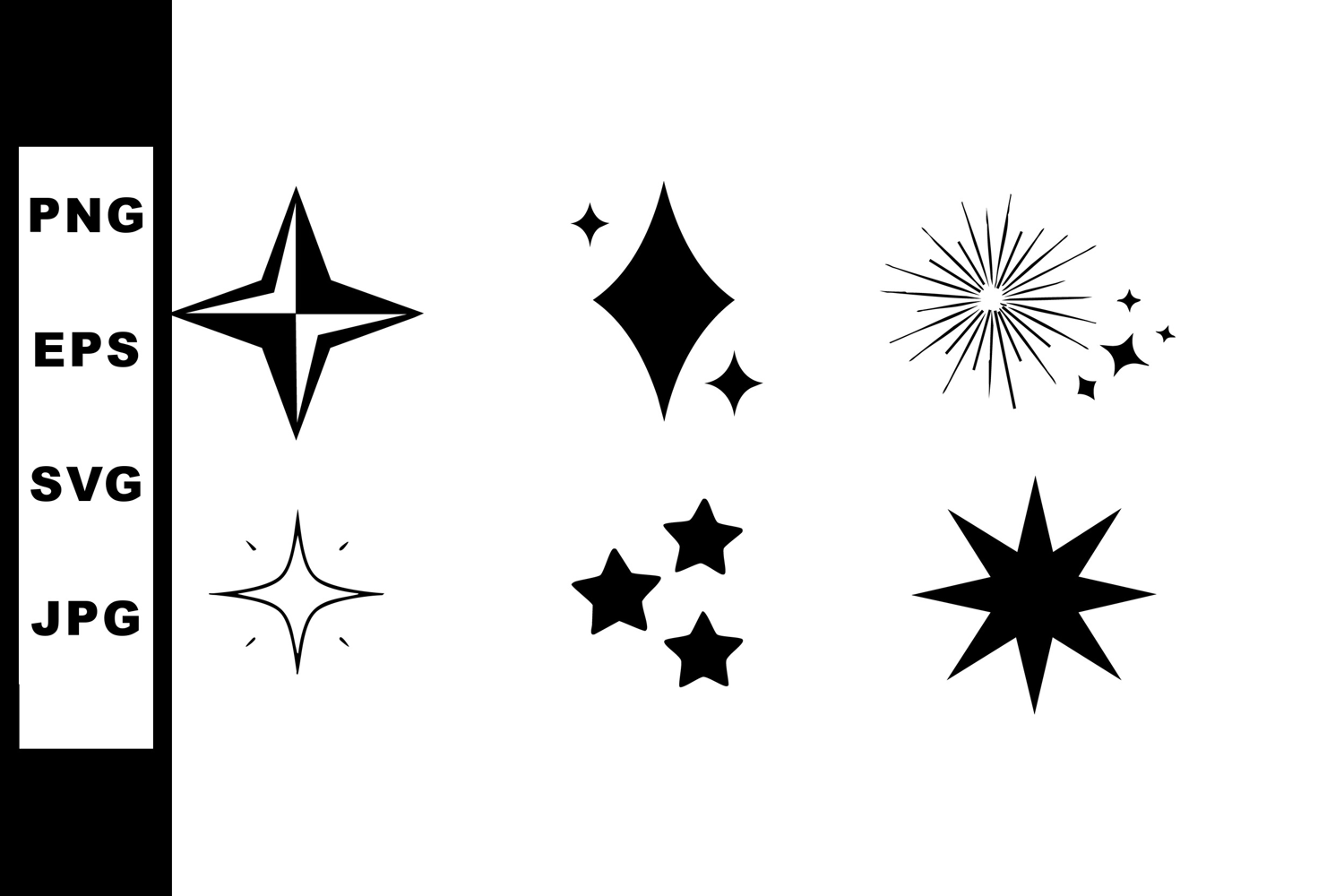 This vector set presents six shining star sparkle icons with diverse glowing shapes and sizes, perfect for design elements and decoration purposes in a minimal style. Bright and clean mood.