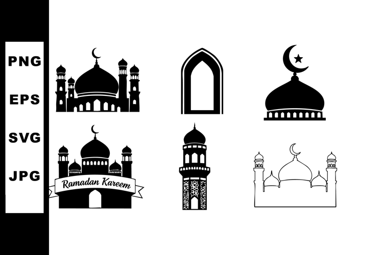 Islamic mosque silhouette icons with crescent moon and Ramad example image 1