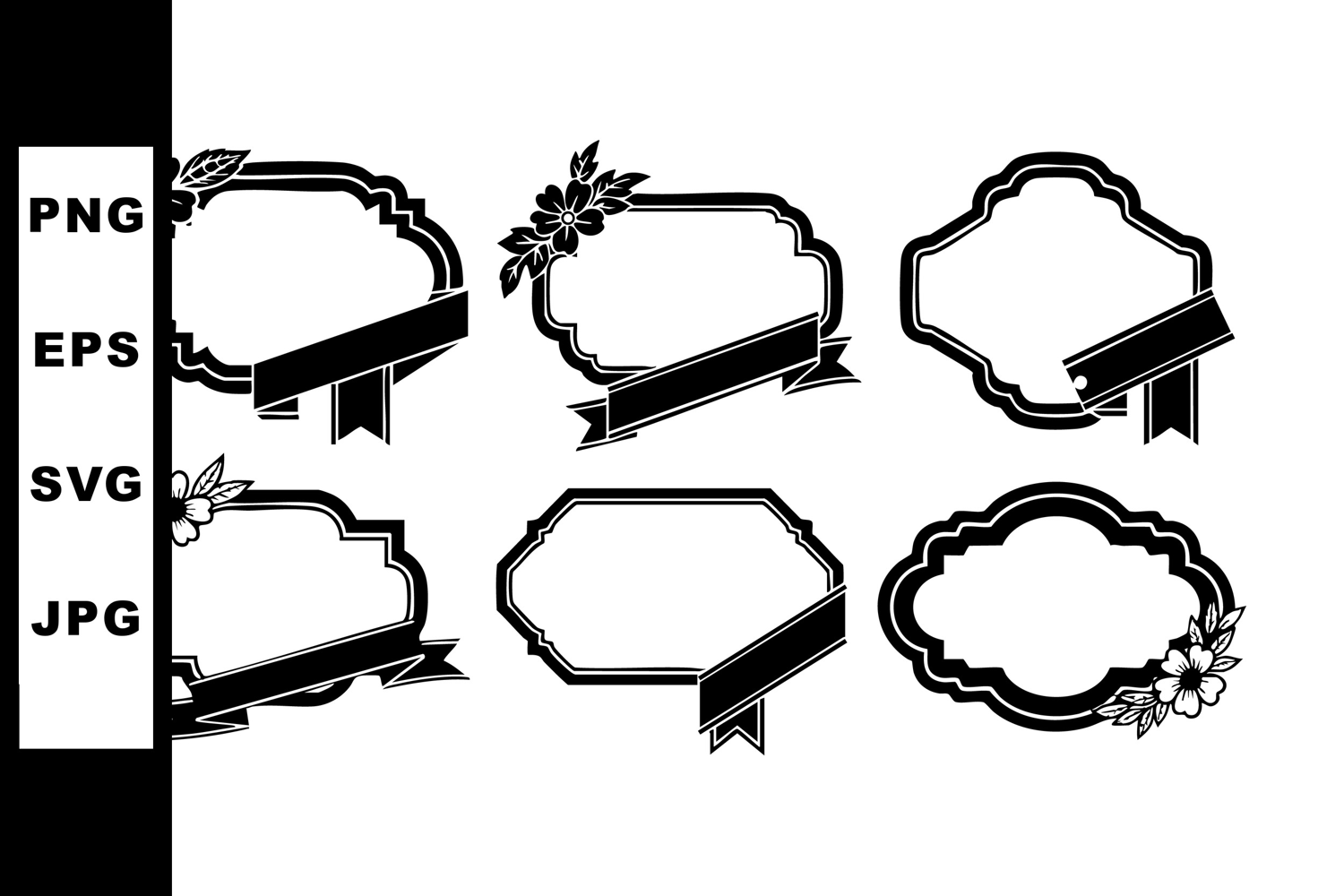 This vector set shows six decorative vintage floral frames with ribbons, perfect for elegant invitations or design projects. Classic style with floral accents creates a refined and charming mood.