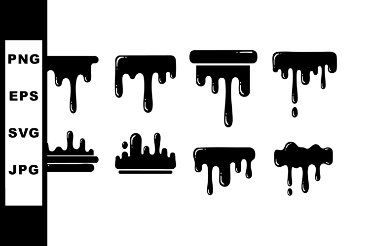 Vector illustration shows multiple black paint drips in different styles and lengths on a white background, clean and simple design, creative mood.