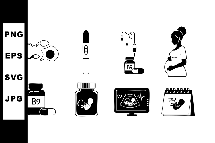 Pregnancy and vitamin b9 supplementation vector icons for pr example image 1