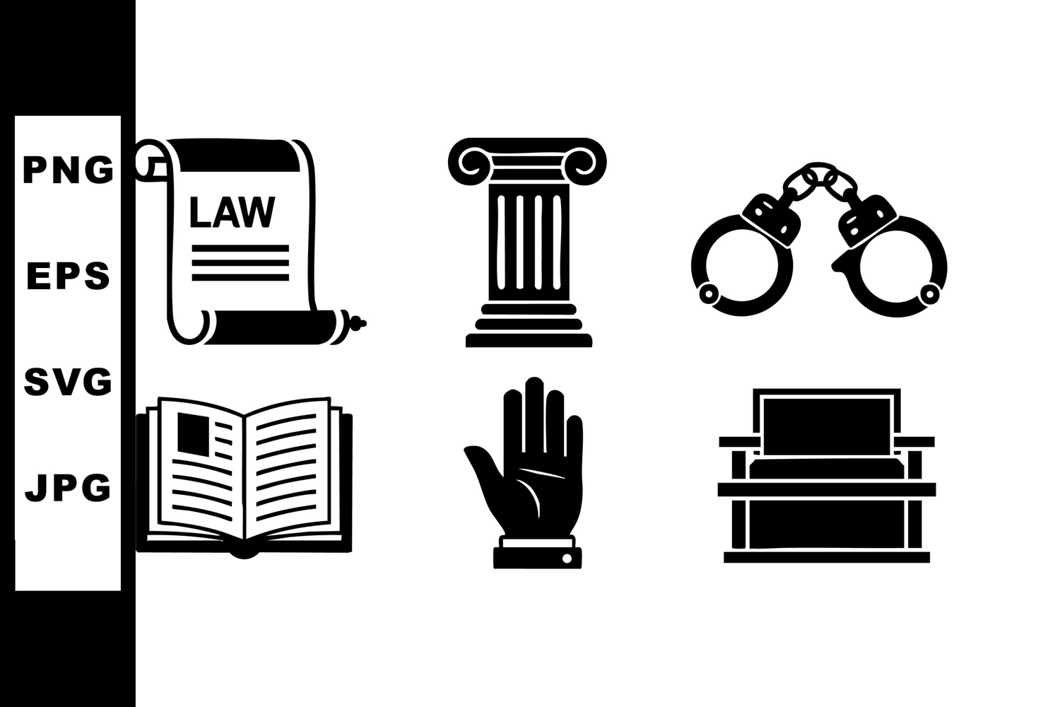 Book Hand Icon Scroll Law Justice Legal Printer Handcuffs Column