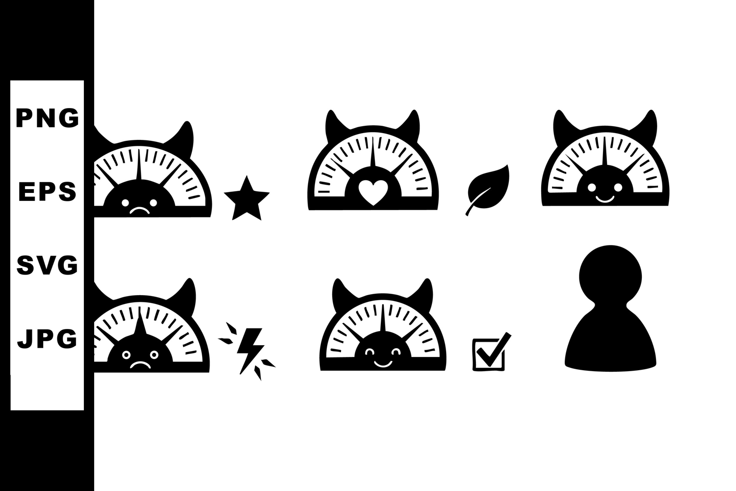 Vector Icon Black Leaf Heart Silhouette Cat Star Speedometer User