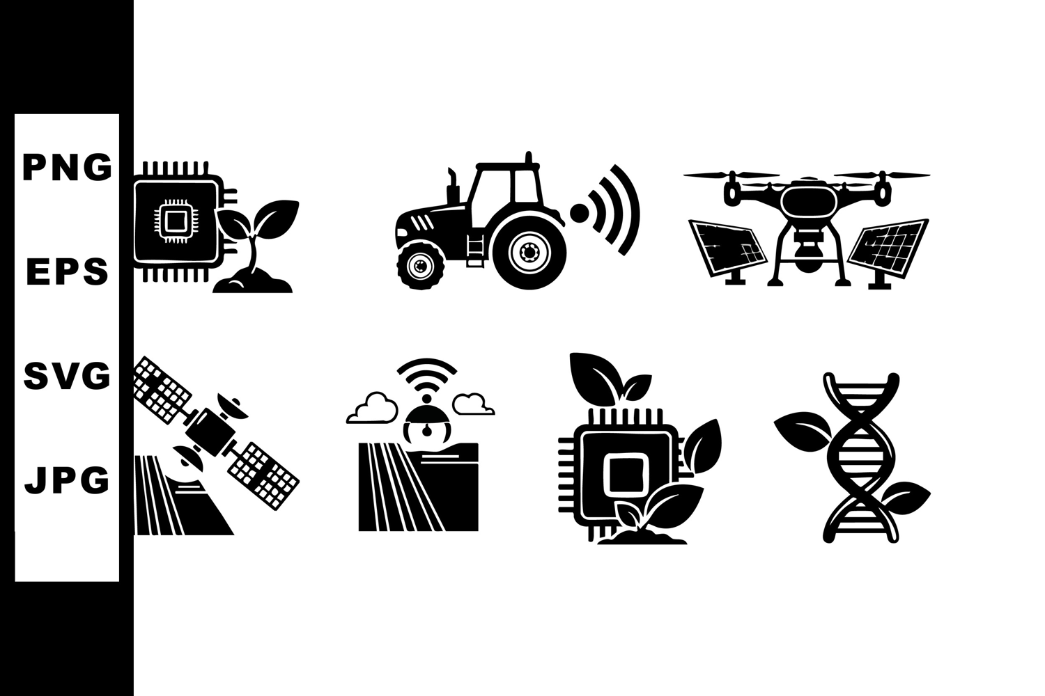 Similar Design Products to Agricultural technology icons with drone tractor satellite