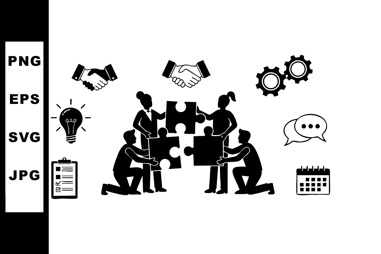 Teamwork Collaboration Puzzle Pieces Business Icons Vector example image 1